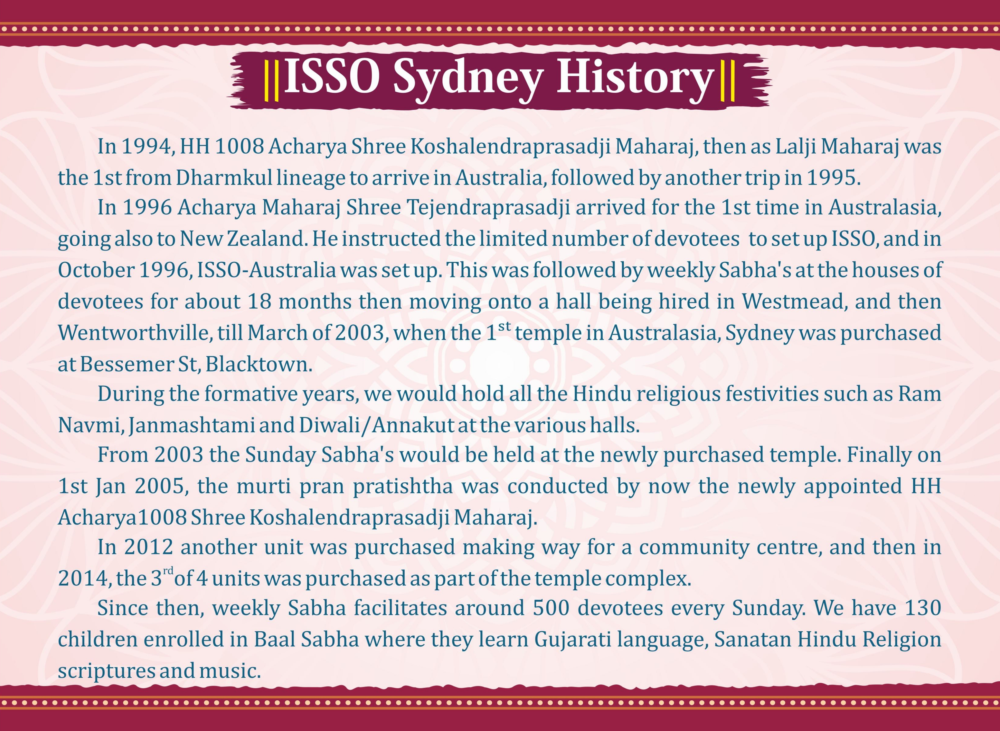 | Location | Sydney Mandir (ISSO) (Australia) |