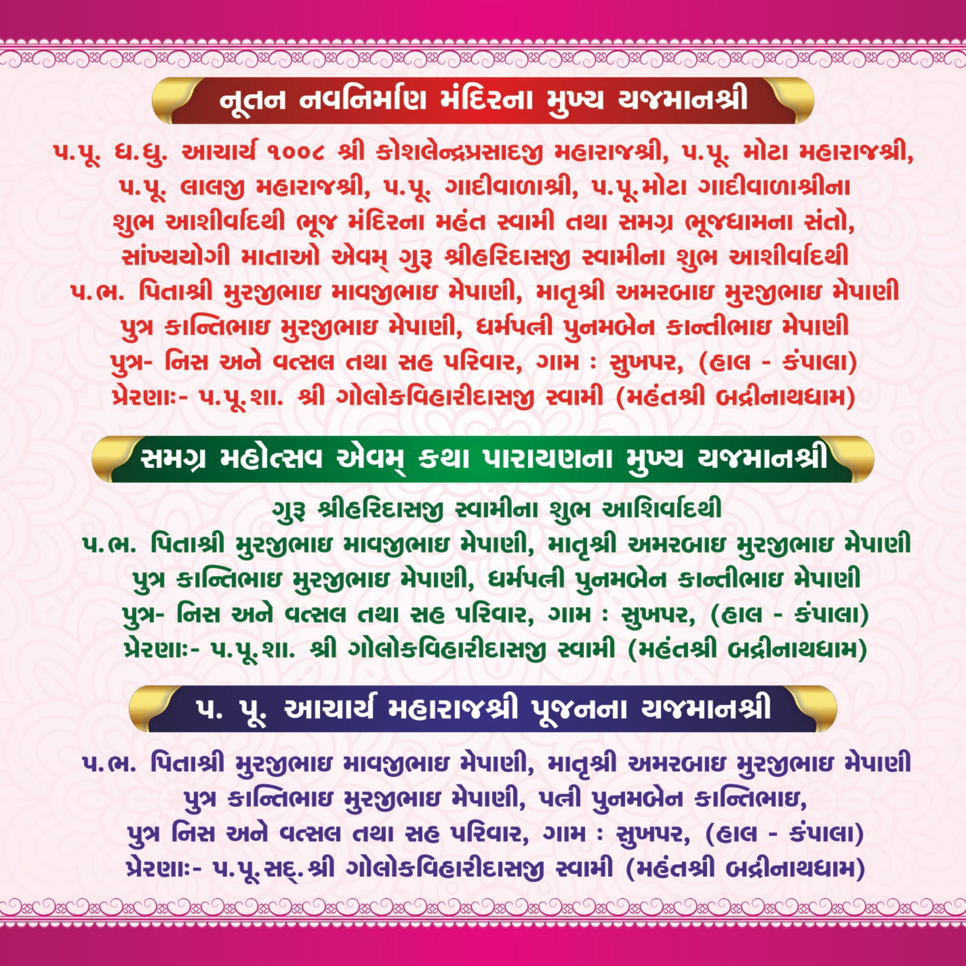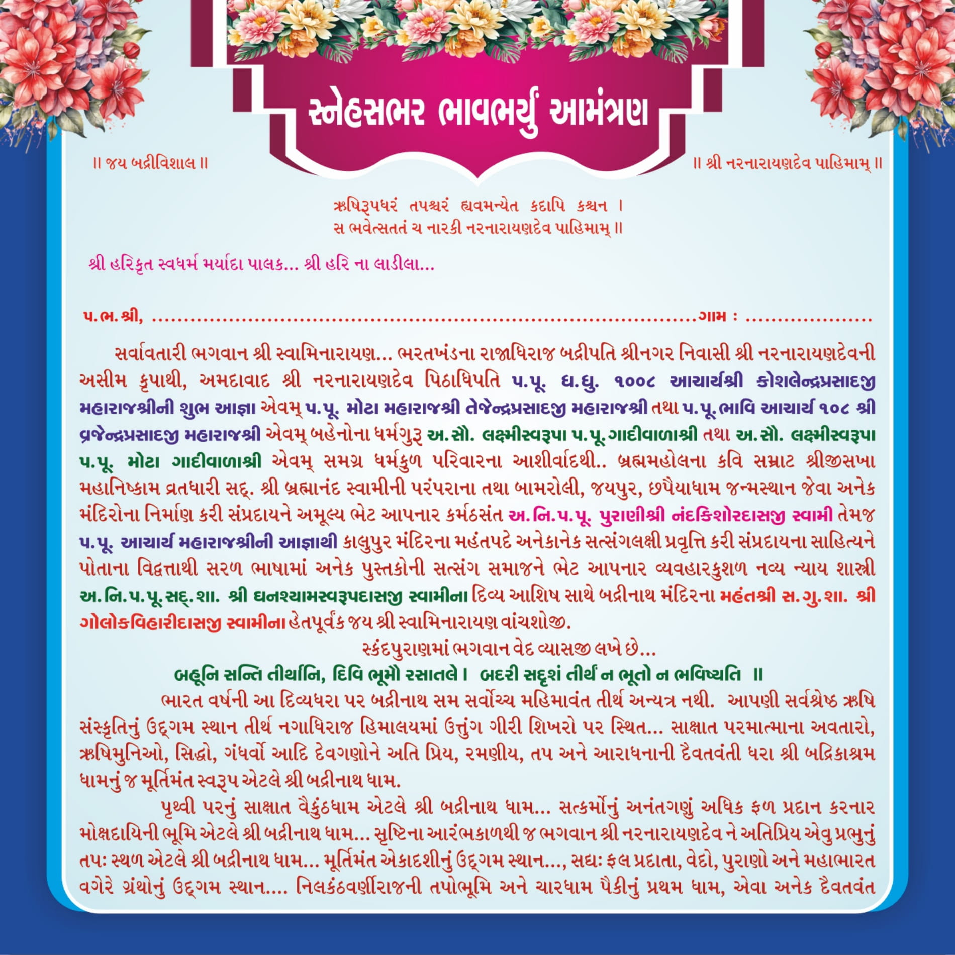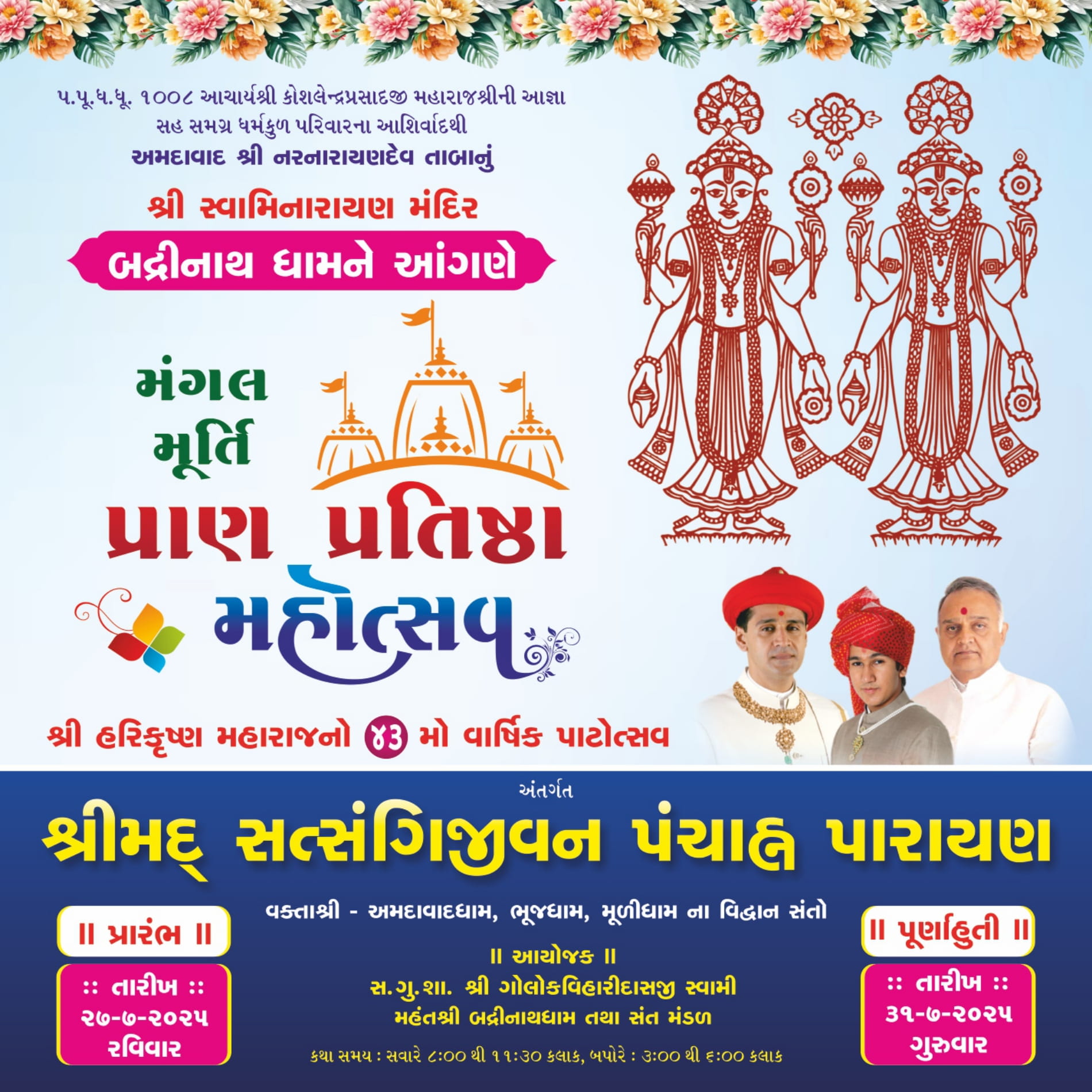 Shree Swaminarayan Badrinath will be celebrating Murti Prathishta from Sunday 27th July to Thursday 31st July 2025
