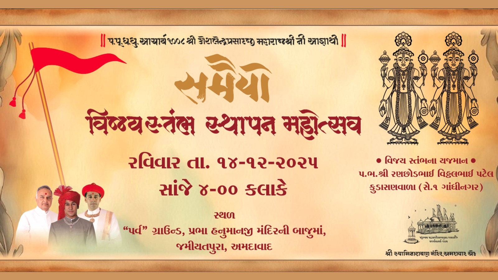 To begin the celebrations of Samaiyo, Vijay Stambh will be hosted on Sunday 14th December 2025 at Parva ground