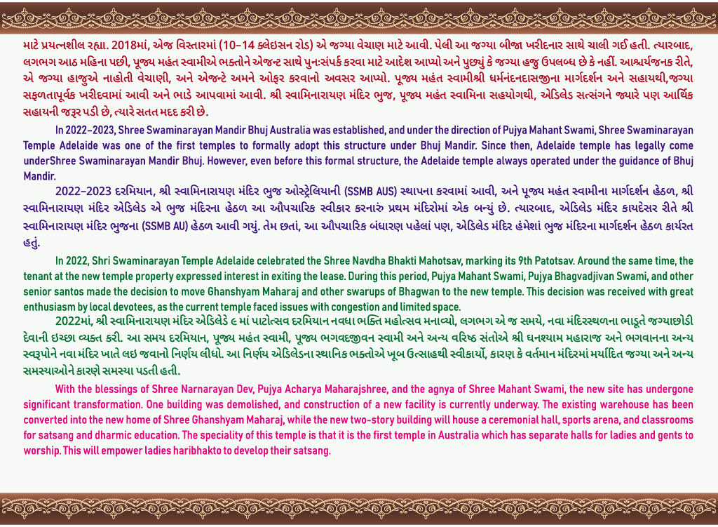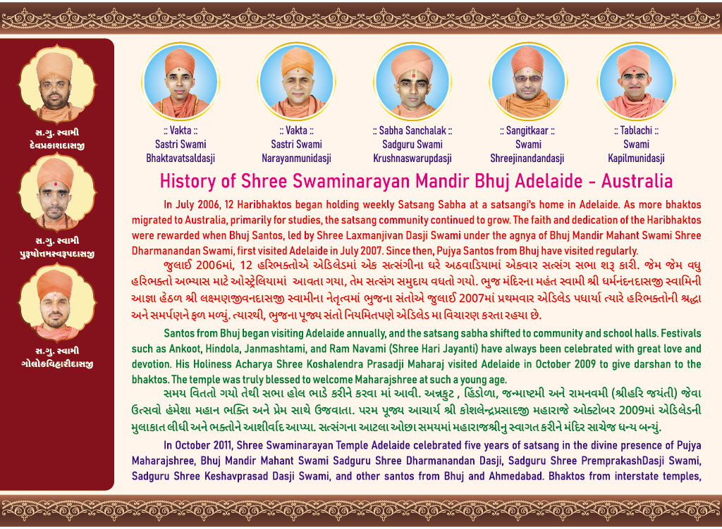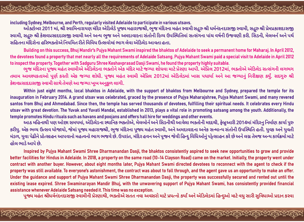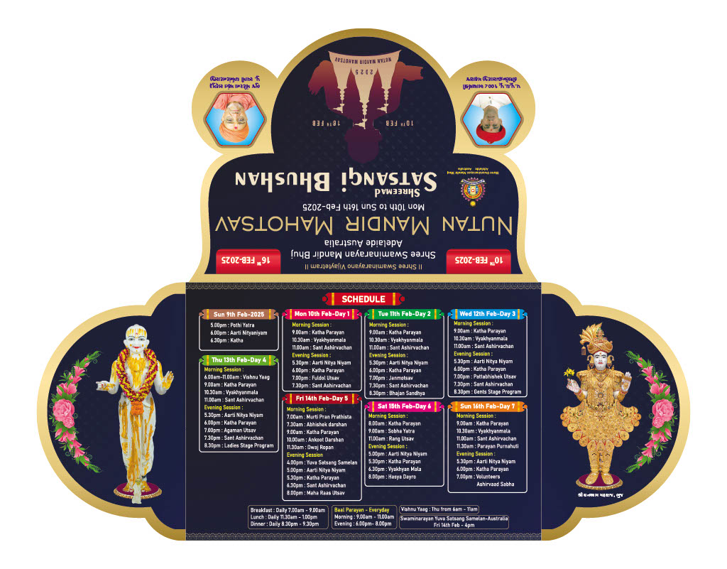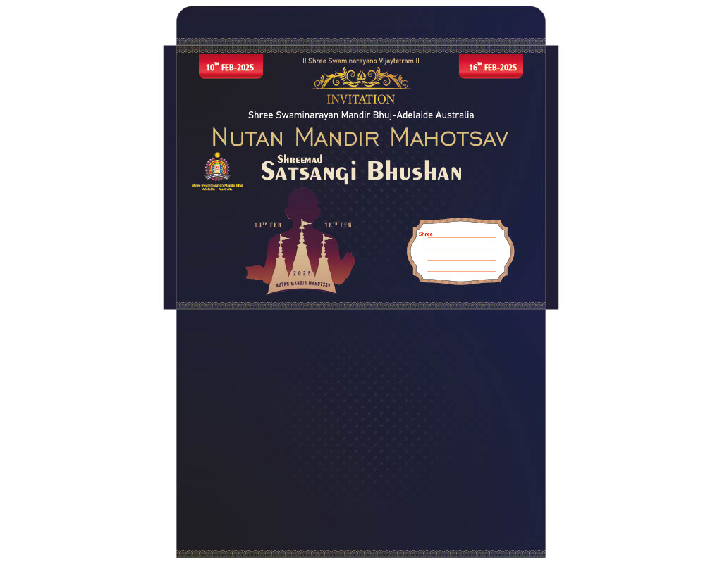 Shree Swaminarayan Mandir Adelaide will be celebrating Nutan Mandir Mahotsav from Monday 10th February to Sunday 16th February 2025. For more information including schedule, please visit Nutan Mandir Mahotsav website