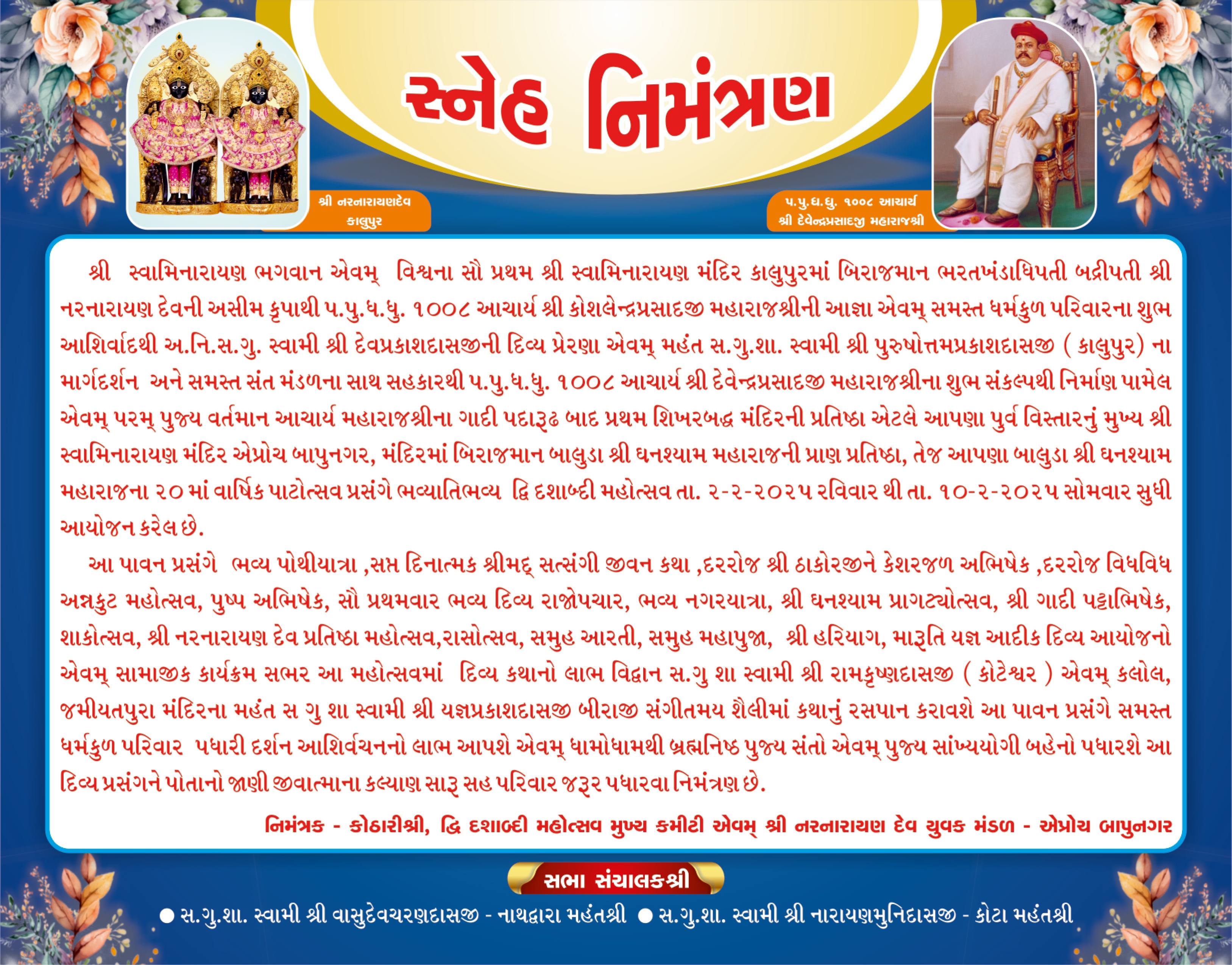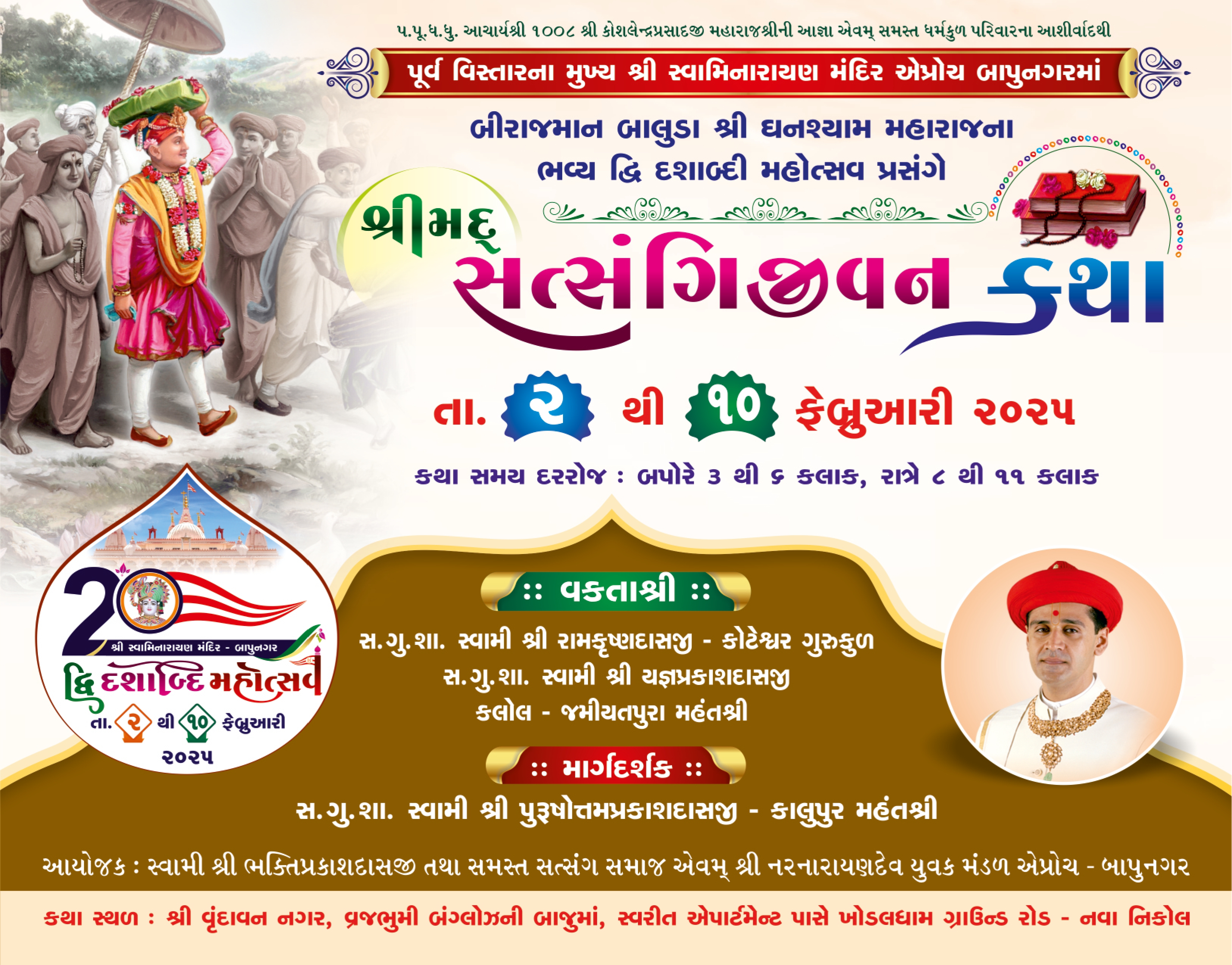 Shree Swaminarayan Mandir Bapunagar will be celebrating 20th Patotsav (Dwi Dashabdi Mahotsav) from Sunday 2nd February to Monday 10th February 2025.