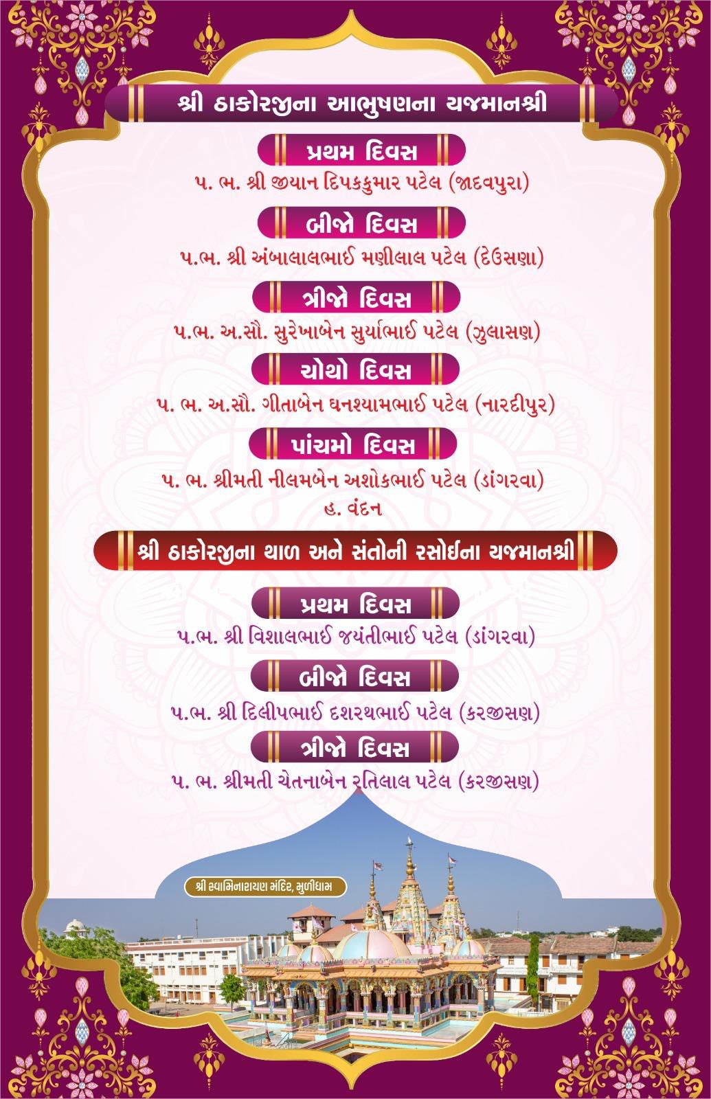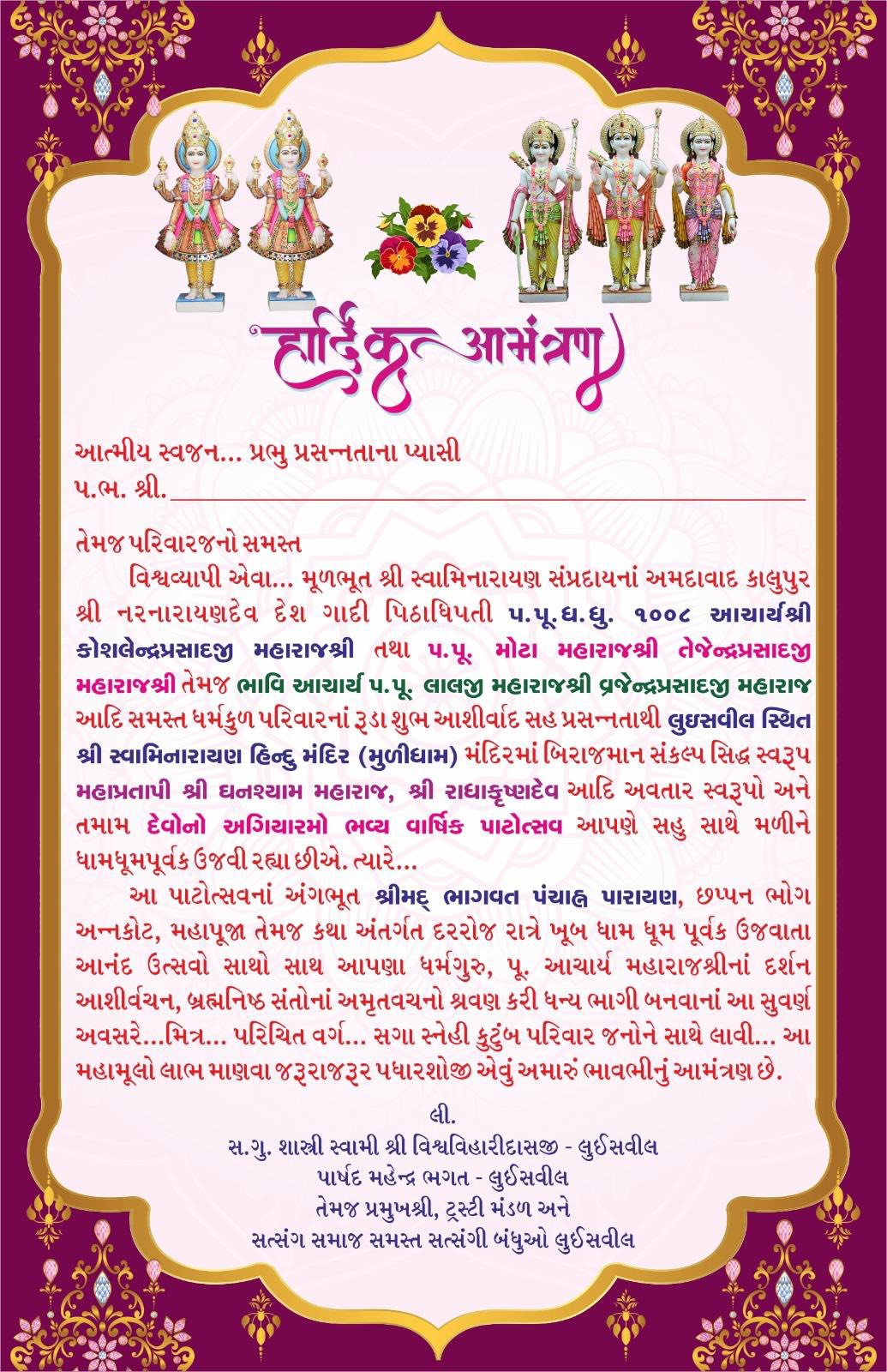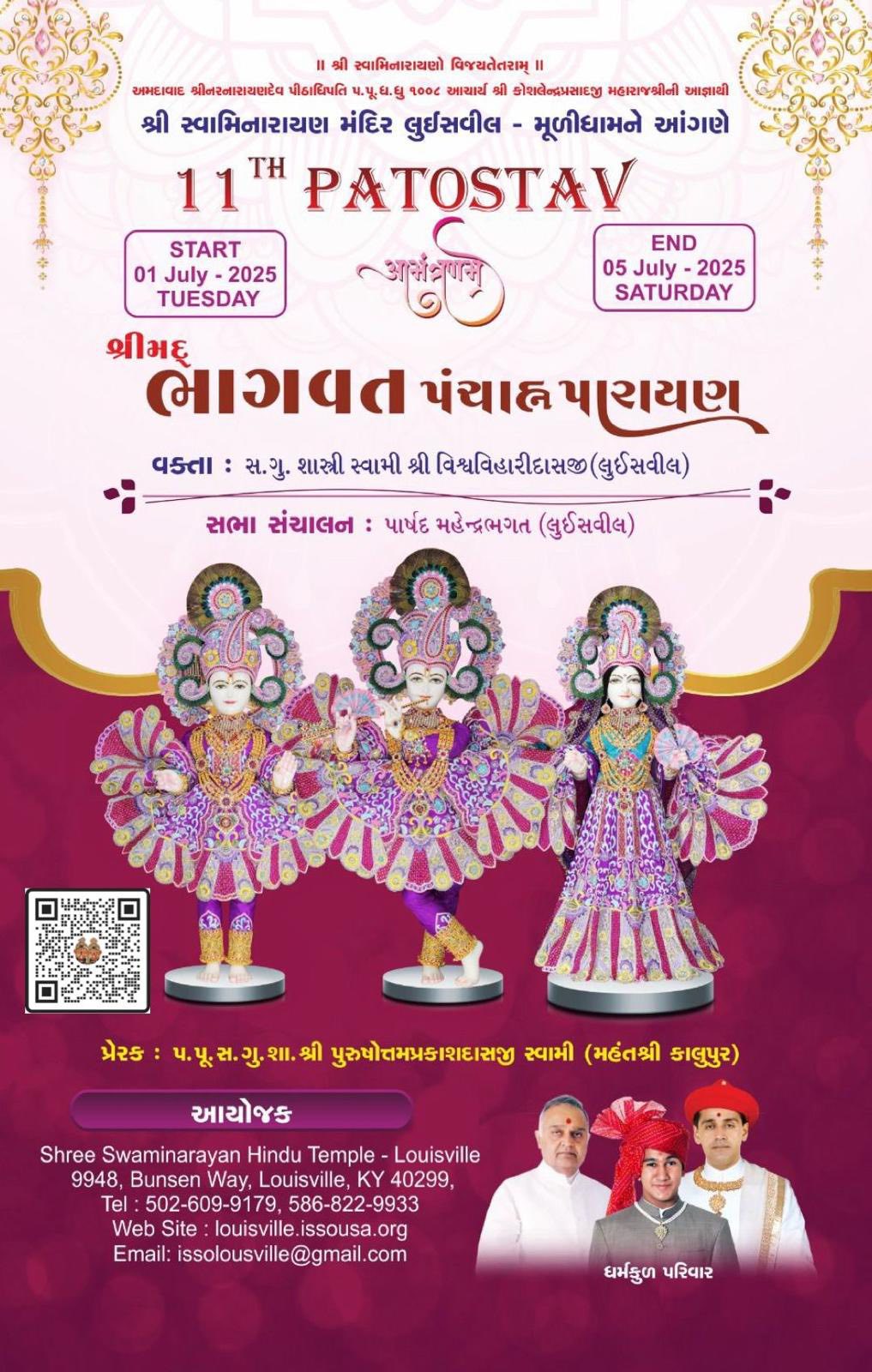 Shree Swaminarayan Mandir Louisville will be celebrating their 11th Patotsav from Tuesday 1st July to Saturday 5th July 2025. Abhishek will be performed on Saturday 5th July 2025 from 7:30AM followed by Ankoot darshan at 12:00PM. Please see poster for full details.
